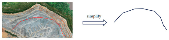 In the XY flat area, we simplify the mine surface. In consideration of the complexity of the stereoscopic surface, for the purpose of computational convenience, the mining surface is simplified twice. The slope toe of the mine is closer to the observation platform. In terms of the characteristics of the camera sensors, the closer the observation is, the smaller the observation range. Consequently, we can simplify the surface at Figure 6 to form a curve which is located at the bottom of the mine.