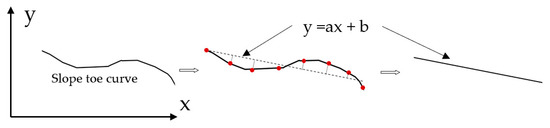 Slope toe simplification: the diagram shows how the broken line is finally reduced to a straight line by line fitting.