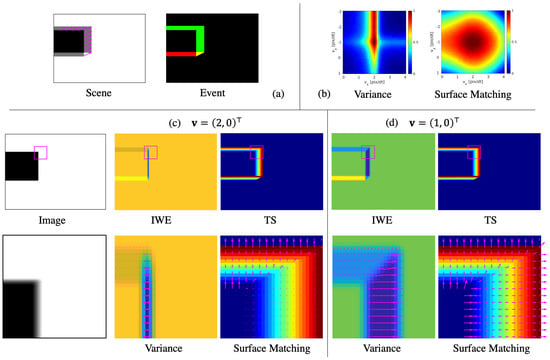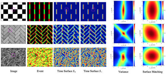 - Surface Matching Loss The proposed loss function represented by Equation (7). This loss is calculated by the difference between the time surface and the shifted time surface warped by the optical flow. The sign has been inverted to match the variance.