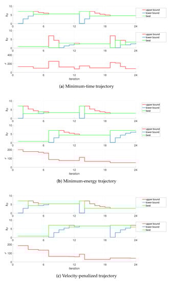 During the optimized landing process, the UAV is expected to precisely follow a reference trajectory to enable efficient landing with respect to some performance index, and the landing procedure can be executed at any stage of the flight, as per environmental issues, or low battery state, and to execute the flying scenario on the basis of some state machine operations. Across the years, with the increasing computational powers of on-board processors, off-line approaches to optimization, soft-computing techniques and algorithms for performing optimal tuning emerged. As in this paper, they require some performance-related cost functions. In addition, they also require any information concerning the model of the plant, clearly on the contrary to the approach presented in this paper. Even fuzzy-logic-based [6] or neural network-based [27] approaches require models to work, to embed this knowledge for further optimization, within rule bases. The modern branch of biology-related approaches to optimization [28] appear attractive even in this context, though usually require long calculation times and simulation-based runs. These again require models. Some relation to these approaches to UAVs can be found in [29].