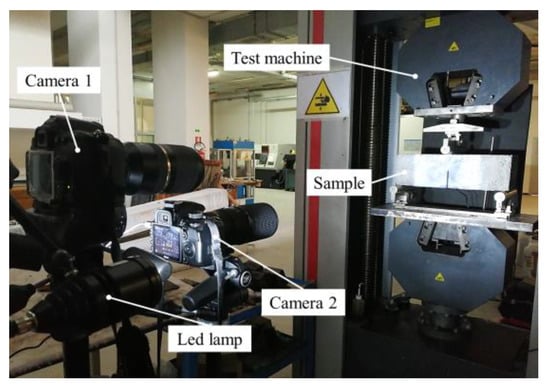 The synchronization of the acquisition is carried out by connecting a trigger port of the mechanical test equipment with a remote control for the two cameras. The rate of acquisition is set as one photo every 6 s, until the specimen failure. Depending on the lens models used in the two cameras, it is necessary to adopt different focal values, as listed in Table 3.