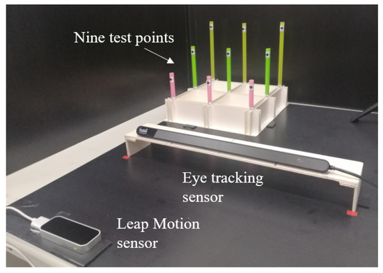 Subsequently, the distances between the origins of the hand tracker and eye tracker ( and ) are manually measured, so that the transformation between the hand tracker and eye tracker coordinates can be obtained. During the testing state, the board that is used in calibrations is removed, and this is called the “virtual board” in this paper.