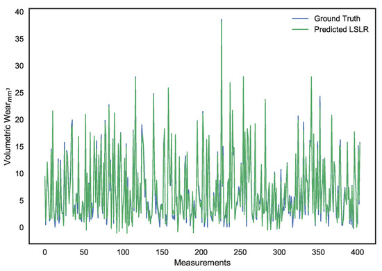 Surface wear prediction on the training set using least squares linear regression.