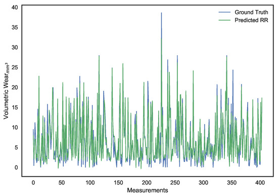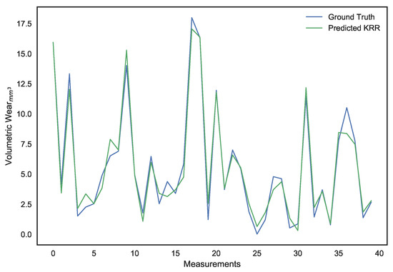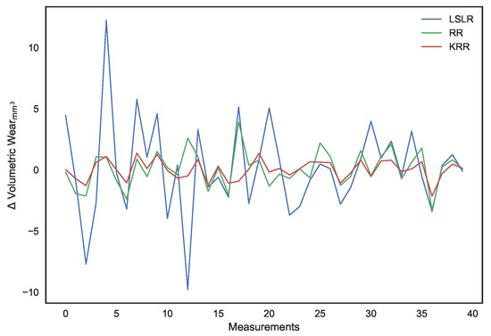 It can be observed that, apart from regression, the other models even predicted negative surface wear losses. The deviations of each of the model’s predictions from the actual volumetric loss can be noted in Figure 16, which illustrates how, as a whole, the deviations for the kernel ridge regression are smaller than other models. Most significantly, as demonstrated by the validation MAE metric, it predicts surface wear with an average deviation of under 1