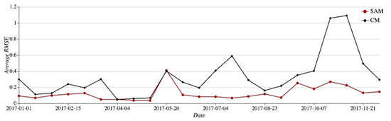 Average RMSE with SAM and CM in the 15 days interval.