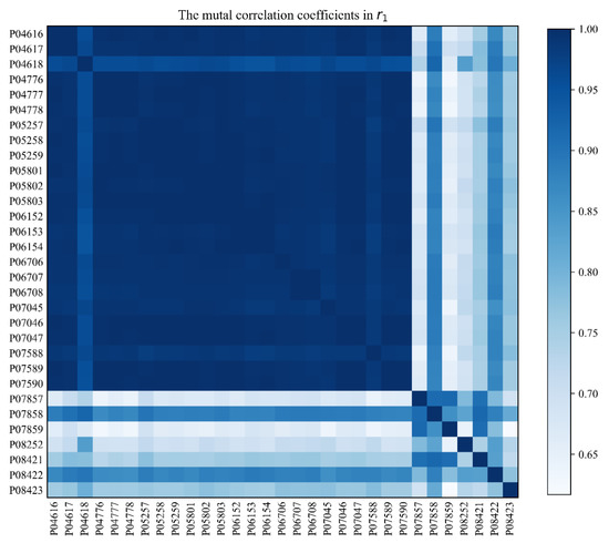 When the time sequence of a node bears a relatively low correlation with that of any other node, the sequence may all project a very low correlation coefficient (Coef) with the node, a situation which will undermine the single node prediction accuracy. The correlation coefficients of the sequence of the 31 nodes available in the local region are calculated and presented in the form of a matrix as shown in Figure 15. In the figure, both horizontal and vertical axes encompass nodes; the darker a box is, the higher the two-node sequence’s correlation coefficient will become.