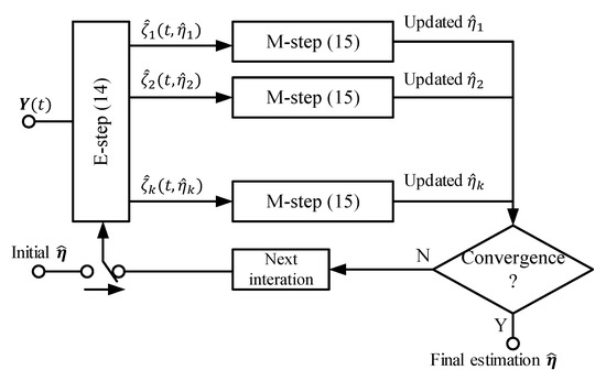 - Feder, M.; Weinstein, E. Parameter Estimation of Superimposed Signals Using the EM Algorithm. IEEE Trans. Acoust. Speech Signal Process. 1988, 36, 477–489. [Google Scholar] [CrossRef]