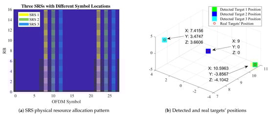 - Signal: The uplink 5G NR sounding reference signal (NR-SRS) sent by the UE is applied. The NR-SRS is an OFDM modulated Zadoff–Chu sequence that is feasible for time delay estimation. The introduction and modeling of SRS are given in Section 2.2.