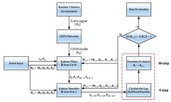 In this paper, based on the EM algorithm, the proposed LSTM and Kalman filter combination method is illustrated in Figure 2.