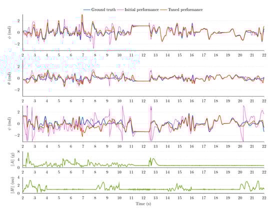 Initial and tuned performance of the gradient descent-based attitude filter.