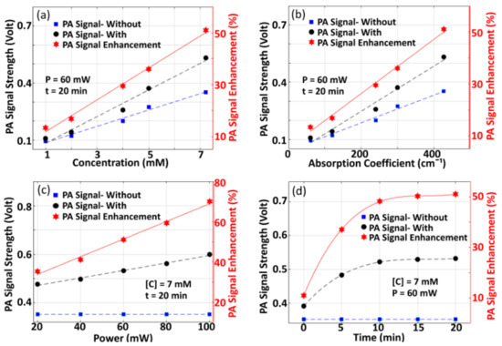 3.1.1. Variation of PA-Signal Enhancement with Variation in Different Parameters