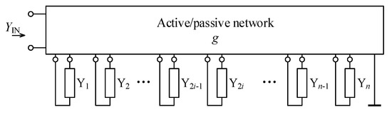 Assume a general function block as shown in Figure 1 that is represented by general active/passive network to which general admittances Y (; n being even number) are connected. The general active/passive network may represent arbitrary interconnection of an arbitrary type of active and passive elements and is determined by its parameter g, a transcondustance specific for this active/passive network. Let the input admittance () of such a general function block be defined as: