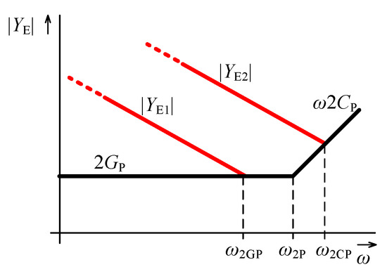 becomes comparable with or even lower than the admittance magnitude of the parasitics and/or , which may prevail. The situation is illustrated by the admittance magnitude asymptotic plots in Figure 10.