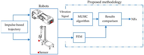 Figure 3 shows the block diagram of the proposed methodology for estimating the NFs of a 2-DOF planar robot using the MUSIC method and FEM.