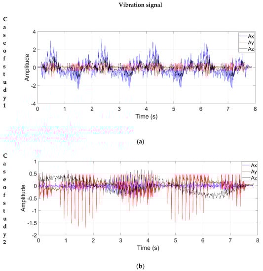 Vibration signal: (a) Case of study 1; (b) Case of study 2.