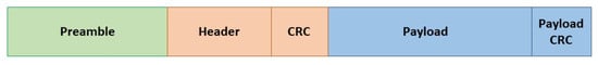- Semtech, SX1272/3/6/7/8: LoRa Modem Design Guide; Appl. Note AN1200.13; 2013; pp. 5–6. Available online: https://www.rs-online.com/designspark/rel-assets/ds-assets/uploads/knowledge-items/application-notes-for-the-internet-of-things/LoRa (accessed on 17 December 2020).