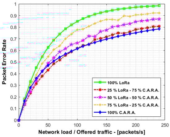 PER comparison coexistence LoRaWAN vs. C.A.R.A.