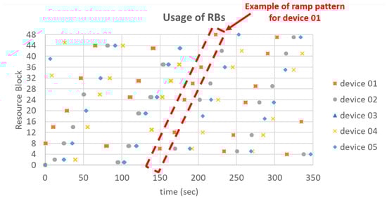 Resource blocks usage in the proof-of-concept (only 5 nodes shown).