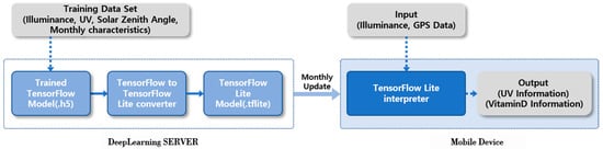 APA StyleOh, S.-T., Ga, D.-H., & Lim, J.-H. (2021). Mobile Deep Learning System That Calculates UVI Using Illuminance Value of User’s Location. Sensors, 21(4), 1227. https://doi.org/10.3390/s21041227