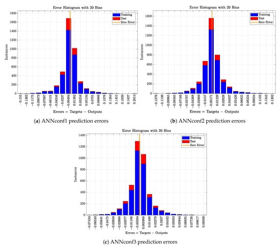 The number of hidden neurons in the Sigmoid Layer of the MLP network has been set to 20, since results show that a good prediction performance is achieved. Here, the Bayesian regularisation algorithm is adopted [] considering a maximum number of epochs equal to 1000. Moreover, the cost function to optimize in the training process corresponds to the Mean Squared Error (MSE). Input and output pairs of data have been split again in the following distribution: 70% for training purposes, 15% for validation purposes and 15% for testing ones.