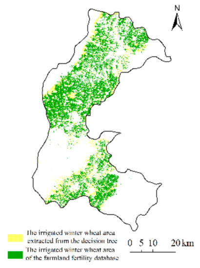 The irrigated winter wheat area extracted from the decision tree and the irrigated winter wheat area of the farmland fertility database of Shanxi Province in 2014.