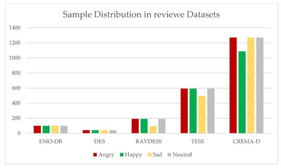 Simulated data sets such as EMO-DB (German) [55], DES (Danish) [56], RAVDESS [57], TESS [58], and CREMA-D [59] are standardized collections of emotions, which makes comparing results very easy. Although their numbers of distinct emotions are significant, as they have synthesized emotions, they tend to have overfitted models around emotions slightly different than what is happening in day-to-day conversations.