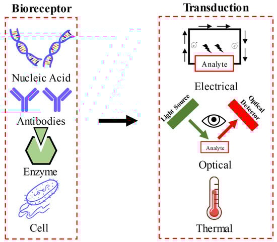 Schematic showing the working principle of biosensors based on different methods of transduction.
