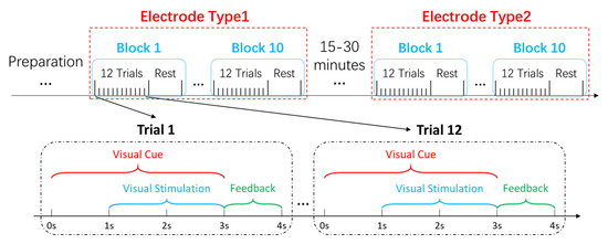 - Cheng, M.; Gao, X.R.; Gao, S.G.; Xu, D.F. Design and implementation of a brain-computer interface with high transfer rates. IEEE Trans. Biomed. Eng. 2002, 49, 1181–1186. [Google Scholar] [CrossRef] [PubMed]