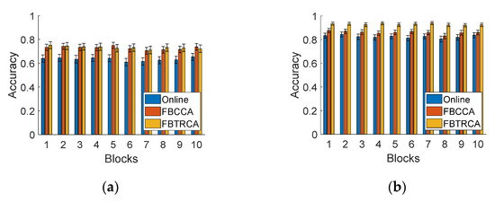 - Chen, X.; Wang, Y.; Gao, S.; Jung, T.-P.; Gao, X. Filter bank canonical correlation analysis for implementing a high-speed SSVEP-based brain-computer interface. J. Neural Eng. 2015, 12, 046008. [Google Scholar] [CrossRef]