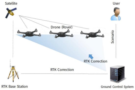 - SungTae, M.; Doyoon, K.; Dongoo, L. Outdoor Swarm Flight System Based on the RTK-GPS. J. KIISE 2020, 47, 328–334. [Google Scholar] [CrossRef]