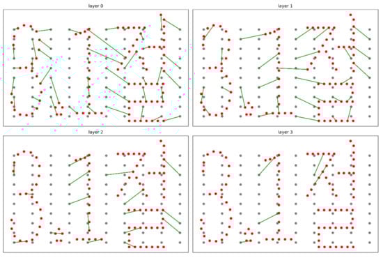 In addition, each scene is separated into several layers to avoid collisions while the drones are moving. For example, in the case of the scene transition from S1 to S2, 4 layers are used, as shown in Figure 22.