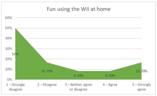 We have analyzed the gender differences in the different variables. No significant difference between girls (3.43) and boys (3.4) has been found in the group sessions’ level of desirability. Additionally, no significant difference between girls (4.14) and boys (4.00) has been found in satisfaction with the training. Moreover, regarding the level of satisfaction with the motor games, no significant difference between girls (4.43) and boys (4.80) has been found. The level of satisfaction with TANGO:H was similar in girls (4.14) and boys (4.40), as was the use of Wii at home (girls (3.14) and boys (3.40). The group sessions’ level of fun was similar in girls (3.71) and boys (3.60). However, girls showed less boredom using the Wii at home than boys. Notably, in the pre-test, we found that only almost 10% of our sample played with the exergames, and children had other preferences in the types of video games. Boys prefer shooters, action, race, adventure, and role-playing video games, while girls like to play simulation games and puzzles.