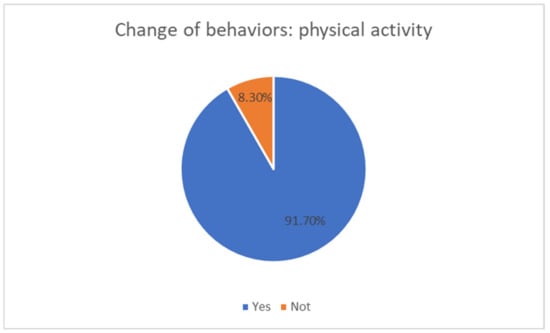 In terms of behavior change concerning their physical activity habits, 91.7% responded that the intervention program had changed their habits (where 100% of boys and 85.7% of girls answered yes) (Figure 12). Likewise, 90.9% thought they had changed their diet behaviors (where 100% of boys and 85.7% of girls answered yes), now being more balanced and healthier.