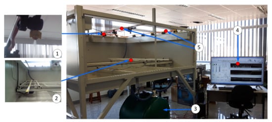 Moreover, the system has hydraulic devices, which can be used to make any configuration of commercial agricultural sprays and new prototypes of sprayers, a user interface for system monitoring and control, and an electromechanical structure that emulates the movement of the agricultural sprayer in the field, as shown in Figure 4.