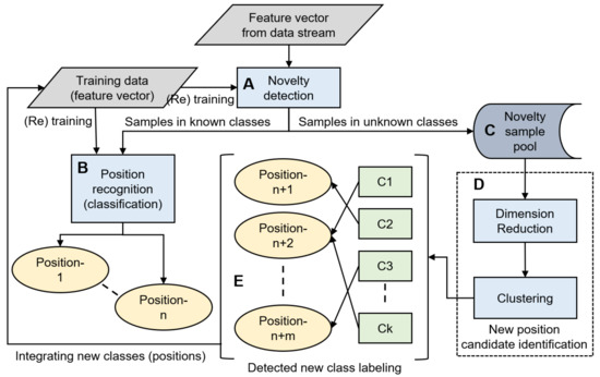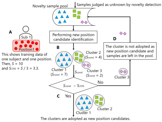- A condition that determines the time of performing a new position candidate identification process is presented as a result of experiments varying the number of samples and the breakdown of the samples of new class candidates. The estimated minimum time to collect a sufficient number of samples is appropriate, i.e., 5–12 min. in three datasets used in the evaluation, enough to be implemented in daily use.