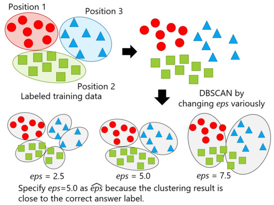 - Saito, M.; Fujinami, K. Applicability of DBSCAN in Identifying the Candidates of New Position in On-Body Smartphone Localization Problem. In Proceedings of the 2020 IEEE Global Conference on Consumer Electronics (GCCE2020), Kobe, Japan, 13–16 October 2020. [Google Scholar]