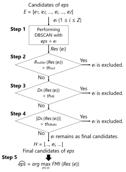 - Perform DBSCAN on the training data of one person by giving each of the Z eps in a specific candidate of eps and calculate , , , and .