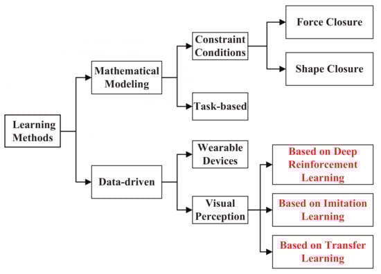 - Li, Y.H.; Lei, Q.J.; Cheng, C.; Zhang, G.; Wang, W.; Xu, Z. A review: Machine learning on robotic grasping. In Proceedings of the Eleventh International Conference on Machine Vision (ICMV 2018), International Society for Optics and Photonics, Munich, Germany, 1–3 November 2019; Volume 11041. [Google Scholar]