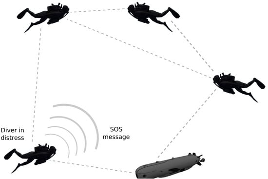 In the last decade, ocean exploration has considerably increased, as has the involvement of human divers performing maintenance work and site surveys. In the harsh underwater environment, these activities pose a great risk to divers’ safety. However, due to the constraints of their work, divers may sometimes find themselves in need of assistance when they are far away from their fellow divers. In such cases, modern diving systems include a way to acoustically broadcast an SOS message, e.g., []. These messages include the ID of the diver in distress and propagate well in the divers’ network. However, without a way for fellow divers to identify the location of the diver in distress, these systems cannot provide immediate help.
