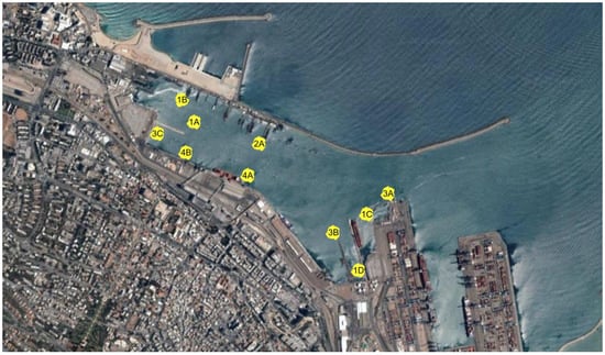 To demonstrate the performance of our approach in realistic scenarios, we examined playback results from a sea experiment performed in May 2009 in the Haifa harbor, Israel, for an underwater acoustic network formed by four boats creating five different sparse network topologies, as illustrated in Figure 8. As described in [], the playback is performed by sending the SOS packet and its relays through the channels recorded in the experiment, and by considering the recorded delays in the nodes and in the communication links. Using this type of data-augmented approach, we take into account both real delays in the channel and distortions caused by the ambient noise and the multipath channel. The data from this experiment are shared in [].