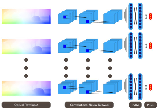 - Wang, S.; Clark, R.; Wen, H.; Trigoni, N. DeepVO: Towards End-to-End Visual Odometry with Deep Recurrent Convolutional Neural Networks. arXiv 2017, arXiv:1709.08429. [Google Scholar]