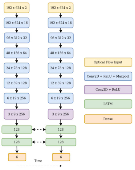 Deep learning networks, such as Mobilenet [16] and Resnet [17], could outperform traditional approaches for image classification, but not for optical flow estimation. Thus, Flownets [28] came into inception as networks more suitable for the task of optical flow estimation. Now, rather than using Flownets for the task of pose estimation as well, we propose an architecture optimized for estimating relative poses from optical flow.