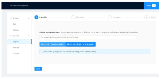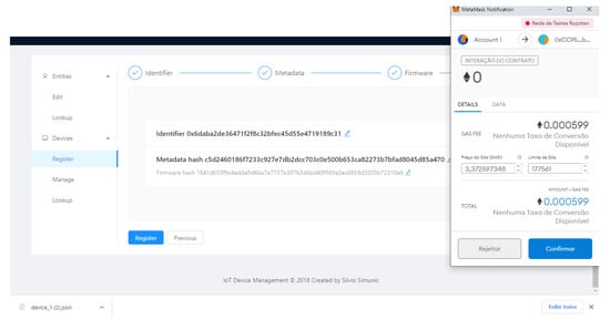 IoT Device Management is the component that is responsible for the registration of devices in Blockchain using Smart contracts. This component is presented in work [], and the code is available online in [].