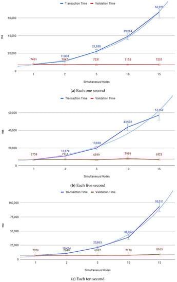 From our testbed’s transaction times, we can conclude that, although we cannot carry out transactions in real-time, the solution has strong adherence in applications where the times for sending payloads via IoT have a frequency of hours or days.