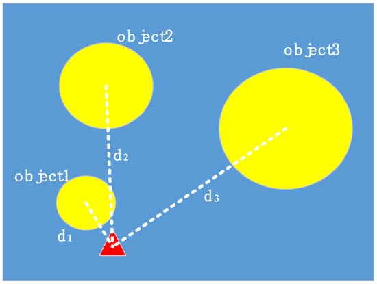 In the formula, n is used to adjust the proportion of prediction box. When the value of n is larger, the sorting weight is more sensitive to prediction box. For example, there are three targets in the image, but the time is only enough for the robot to perform one movement, as shown in Figure 4.