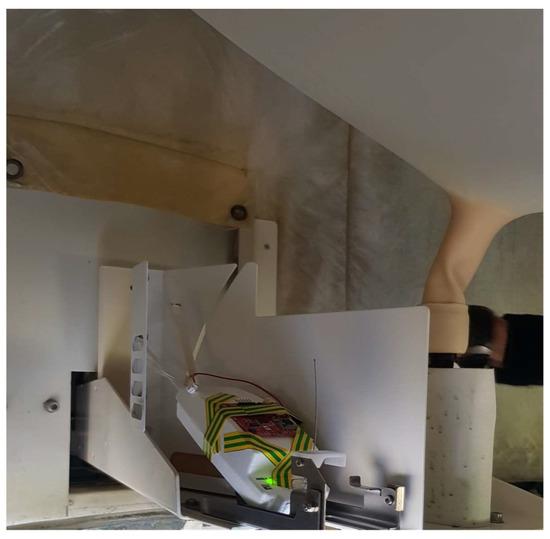 The network setup for this measurement included a fully operational mini radioprobe gathering, processing, packing, and transmitting the information from the different sensors, and a ground station receiving, storing, and postprocessing the received messages. The tiny radioprobe was attached to the front side of the reference radiosonde’s cover and activated just before the launch to save energy for the flight. The radioprobe’s transceiver was programmed to provide an output power of 14 dBm at a central frequency of 865.2 MHz, spreading factor of 10, and bandwidth of 125 kHz. The receiver was placed close to the ground at an approximated height of 1 m. Because this set of measurements was carried out in a nonobstructed open environment, the transmitter was in LOS with the receiver at all positions. The system setup and trajectory followed by the systems with respect to the ground station are shown in Figure 5 and Figure 6, respectively.