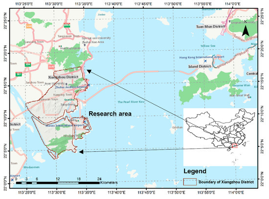 Location of the case study area, Xiangzhou District, Zhuhai.