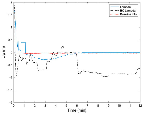 Comparison of the positioning error in the Up using LAMBDA, Baseline Constrained (BC) LAMBDA, and the proposed method using baseline information.