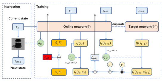 It is noteworthy that the maximum operation in Equation (9) leads to overestimation of Q-values. In order to alleviate this problem, Van et al. [25] propose double DQN that decouples action selection from action evaluation and can be rewritten as: