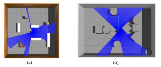 The training and testing environments for navigation task. (a) training environment (b) testing environment.